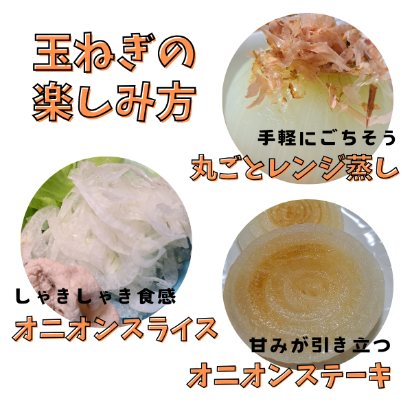 新玉ねぎ→生食(サラダ)がおすすめです。